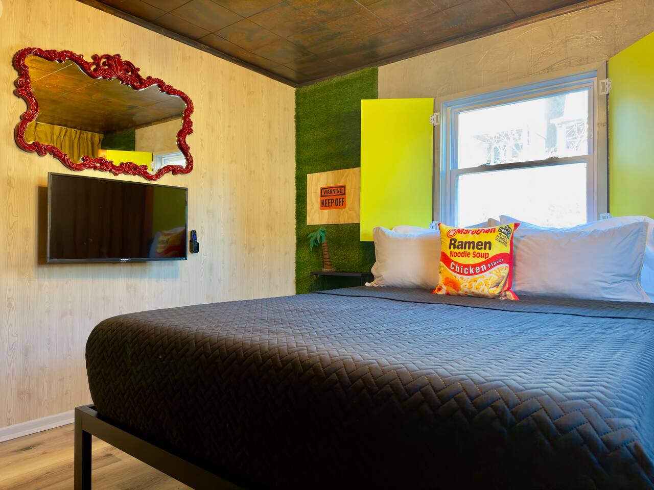 Please Note: The Pop Art Pad is in transitioning neighborhood that's a melting pot of young professionals and longtime residents. Many of those longtime residents don’t have the means to update their homes, whereas new residents are buying with the intent to improve. I personally lived here for a year, parked my Wrangler directly across the street and walked my dog throughout a 3-4 block radius. If you require a street with perfectly manicured lawns and picturesque ambiance this unfortunately isn’t it— but we are working on that with our neighborhood volunteer group . If you are seeking a place that is QUIET, convenient (by car) to many areas of Pittsburgh and nearby conveniences such as a grocery store, gym, liquor store 3 min away —a movie theater/higher end shopping 10 minutes away AND affordable, this might be the place for you! We’ve spent a lot of time designing and executing a fun vision for the space. A variety of people have stayed with us and enjoyed their time here. Please take a moment to browse the reviews.